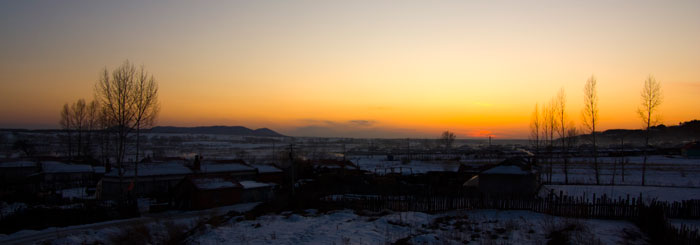 初三一大早,我跟欧川一起去楼上吃早饭,我这一年能吃3次早饭就不错了,跟他们去吃纯属好玩,结果从吃早饭开始就被达哥他们兄妹俩骚扰,跟我一起见证了欧川的饭量...太他妈能吃了,6个馒头!上车启程,车上的人就是此行的全部队员了,我显然是一直与欧川坐在一起,因为只有我们俩是男单,这帮人后来竟担心我们搞同。领队是阿奇,他再三叮嘱大家不要叫他导游,对于他们这行来说被叫导游是很耻辱的,因为户外团体的行程全部是为了旅行者而设定,与导购和回扣等行为划分界限很明确。大家被迫在车上用麦克风做了自我介绍,我还是让大家按驴名叫我阿庆,这个多年前由驴友起的名字。阿奇强迫买过半价票的小孩都要表演节目,我好像搪塞过去了~~后来他们把这事也忘了。欧川主动要求当了副领队,他很期待他唯一一次独自出来的旅程。中午车在五常市山河屯停下来吃饭购物,下午很早就到了东升林场,林场其实今年的雪不算大,山上的雪倒是比北京的厚一些,车上的人大多是深圳湖北等地来的,小孩子们都是没见过雪的,有点雪就高兴的不得了,行礼放到客栈之后我就独自往山上跑,想踩一踩没人踩过的厚厚的雪,蹂躏的感觉挺爽的,而且还不冷,可以随意躺在上面,陷下去。太阳快落山我才往回走,大部分的队员都在客栈附近的山坡上玩滑雪呢,我从房梁上捡了一根很长的冰柱跟小孩子们显摆,当然,这可不结实了。大家凑了800块钱买了烟花,夜雨的组织很有意思,每人出30,领队出100,从始至终都坚守着户外组织的光荣旗帜。我拿着三角架试着拍了一些烟花,所以我也就没去放,我那份让那些孩子们分了。晚上的大桌饭是免费喝酒的,满满两大桌的人和菜,之后好像还去女生的大房间在炕上很多人一起玩杀人游戏。玩完之后我和欧川在客厅和老板聊了会天,回到房间之后大家都睡着了,但我们确惊奇的发现火炕上只剩下了一个人的位置,我们仔细看了看确实没法挤出来地方了,就去领队那屋把领队扒拉醒了,最后我把欧川扔在领队那屋跟领队和司机一起睡的。